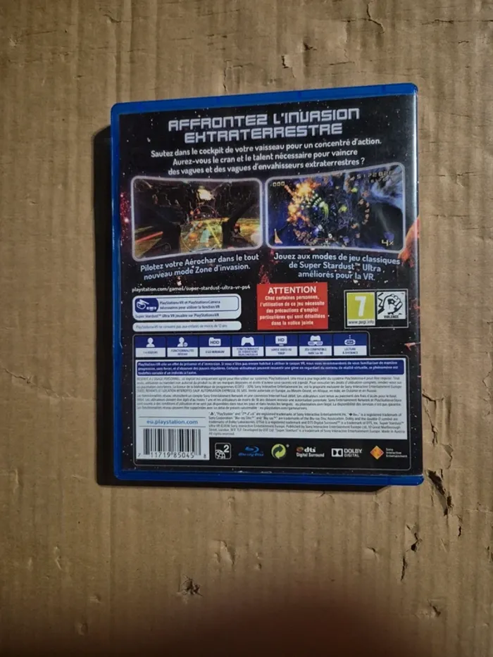 Jeu Super Stardust Ultra VR pour PS4 en bon état. Version française. Le casque VR peut être utilisé avec le jeu. Le CD est en très bon état. La jaquette n'est pas l'originale mais une photocopie couleur réalisée sur papier épais et satiné. #jvtm59_PS4 #jvtm59_PS4VR