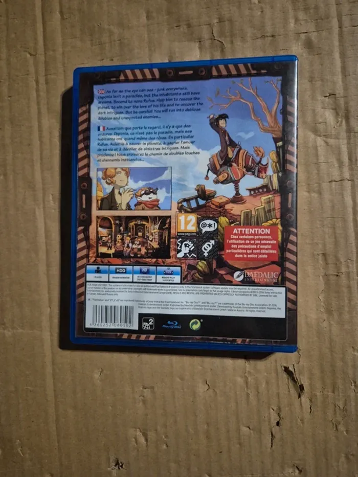 Jeu Deponia en bon état. Version française. Le CD a quelques micro-rayures mais le jeu fonctionne parfaitement. La jaquette n'est pas l'originale mais une photocopie couleur réalisée sur papier épais et satiné. #jvtm59_PS4