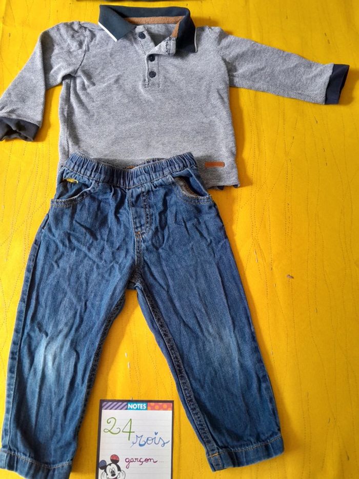 Tenue 🌳 habillée 🍁 Printemps : 3 pièces 24 mois Polo + Jean + sweat - photo numéro 2