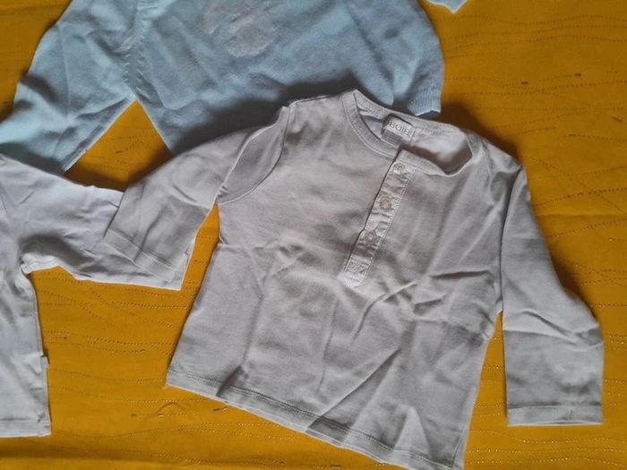Lot 6 mois Obaibi 4 pièces 🩷 🌻idéal Printemps été car léger ☘️ 1 sweat bleu très clair avec dessin : obaibi 💙 1 t shirt blanc manches longues 🤍 1 t shirt gris très clair avec chien col Mao ⚫️ 1 pull ultra léger pour le Printemps bleu très clair 🔷️ ☀️en excellent état ! ☀️ Bonne affaire!😆 ⚠️#⚠️ #ensemble6mois #lot6mois #pantalon6mois #lotmisaison6mois #6moislot #6moisensemble #6moisgarcon #6moisgarçon #6moismec #6mgarcon #lotgarcon6mois #ensemblegarçon6mois #6moisobaibigarçon #6moissergentmajorgarçon #6monthboy #6mboy #6moismisaison