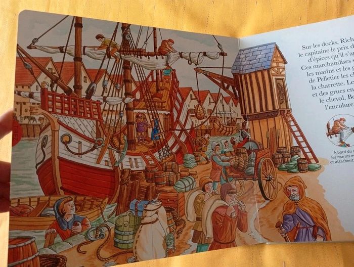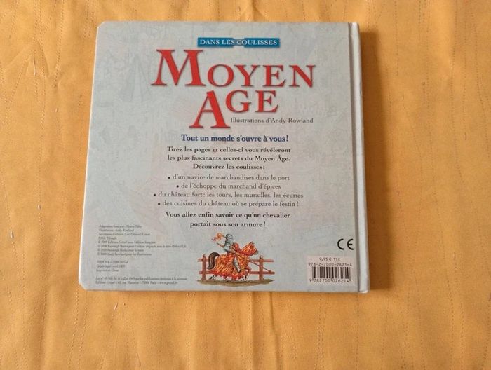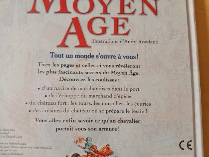 Tirez les pages et celles-ci vous révéleront les plus fascinants secrets du Moyen Âge. Découvrez les coulisses : d'un navire de marchandises dans le port ; de l'échoppe du marchand d'épices ; du château fort : les tours, les murailles, les écuries ; des cuisines du château où se prépare le festin ! Vous allez enfin savoir ce qu'un chevalier portait sous son armure ! Éditeur GRUND JEUNESSE Date de publication 5 mars 2009 Langue ‎Française Poids de l'article ‎700 g Âge de lecture ‎ 0 - 12 ans Dimensions 26.1 x 2.2 x 26.2 cm #chevalier #chevalerie #lecturecp #lecturece1 #lecturechevalier #cp #ce1 #lecturece1chevalier #chevalier #livrechevalier #livresCP #livreschevalier #pourapprendreàlire #apprendrealirecp #livrecogarcon #livrecpchevalier.#
