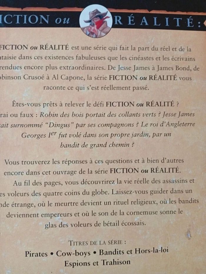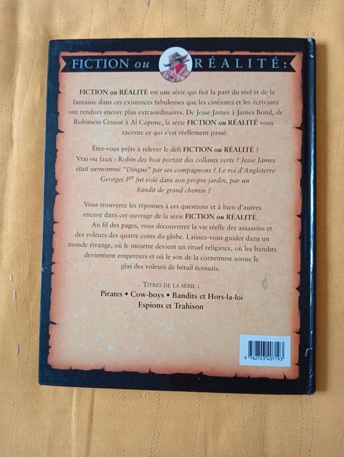 Livre en excellent état proche du neuf ! Bandits et hors-la-loi - Fiction ou realite - toute la verite sur les hors la loi, detrousseurs et autres bandits de grand chemin ... des brigands de la chine ancestrale aux desperados d'aujourd'hui Auteur: Ross stewart L'olympe / Maxi livres. 1996. In-4. Relié. 48 pages illustrées en couleur.