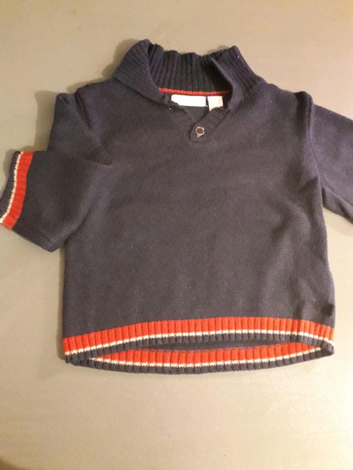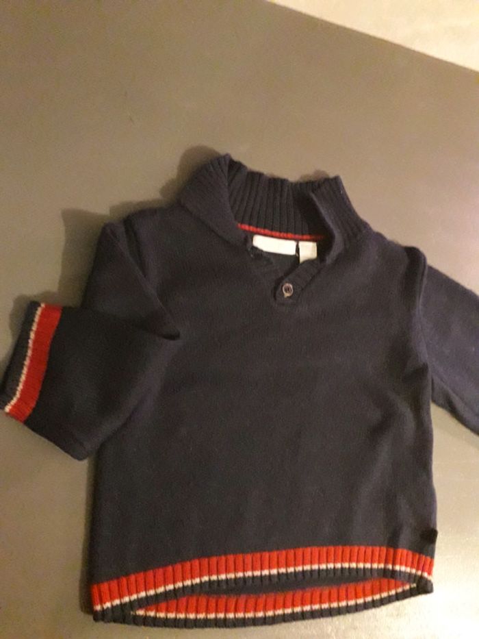 pull chaud idéal hiver 6-9 mois taille assez grand liseret rouge blanc très frenchy