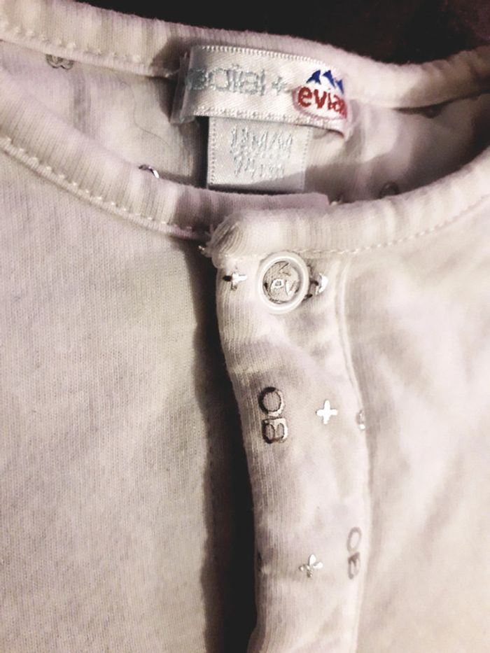 Vends veste coton doublée col rond avec petites pressions Evian logo argenté trop trop mignon Bb mixte totalement Très bon état  Couleurs blanc. Et argenté. #obaibi #12mois #12moismixte #bébé #chaud