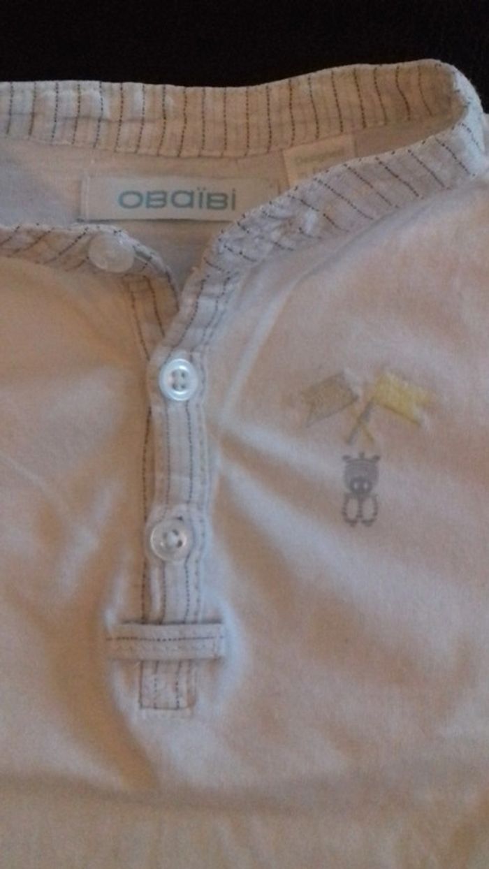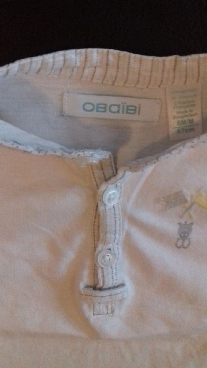 T shirt manches longues 6 mois Obaibi col Mao gris blanc hiver - photo numéro 1