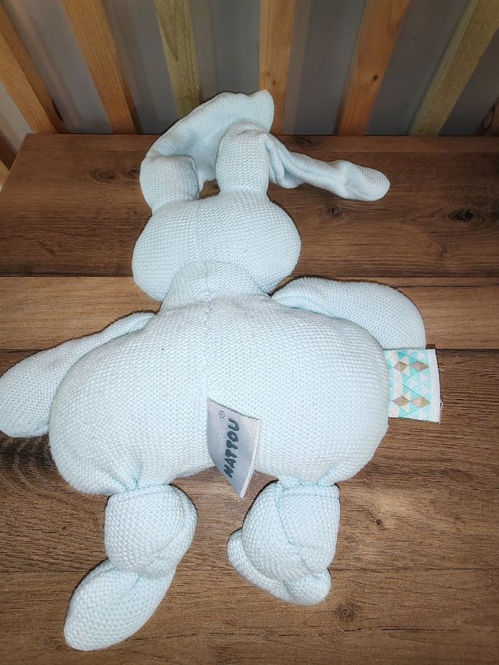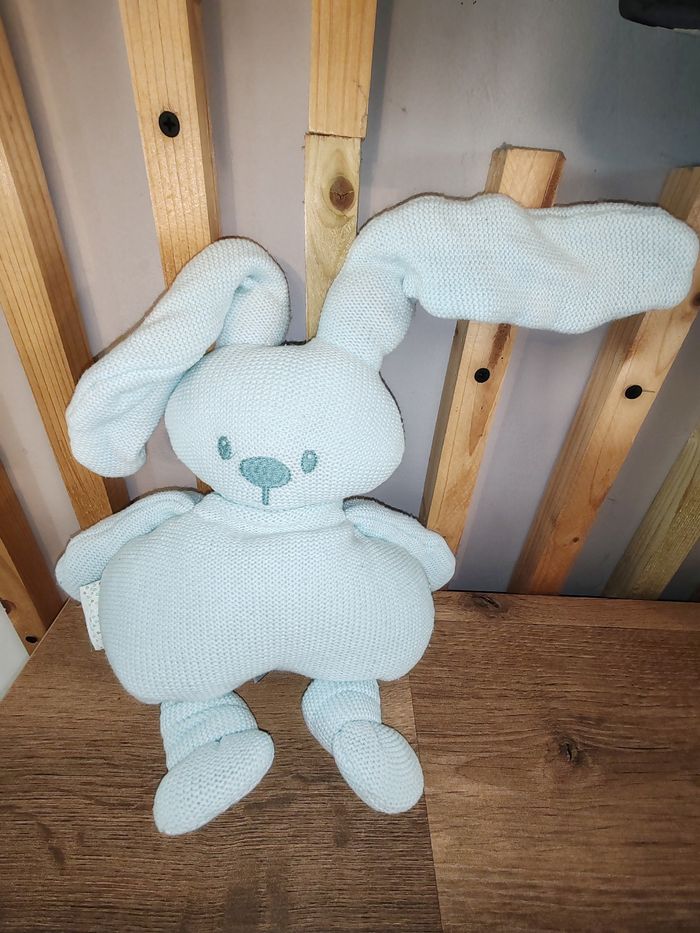 Lapin tricoté bleu clair Marque nattou Tbe Étiquette marque présente Grandes oreilles 25 euros Envoi en relais