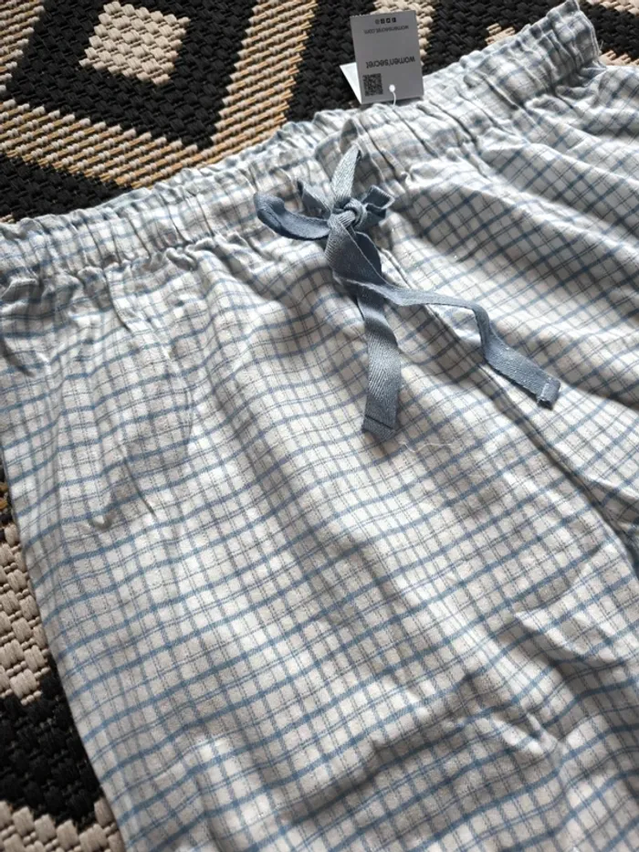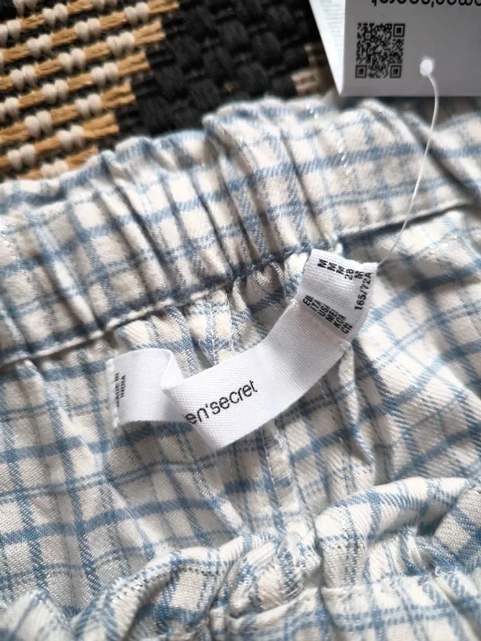 Confort absolu garanti avec ce pantalon de pyjama en tissu léger et doux, idéal pour les nuits tranquilles ou les dimanches cocooning ☁️. Motif à carreaux élégant dans des tons clairs et fils argenté, avec taille élastique et cordon de serrage pour un ajustement parfait. Article neuf, jamais porté, avec étiquette encore attachée. 🧺 Matière agréable 📏 Taille M standard 🆕 Produit neuf 💎 Marque Woman'Secret, gage de qualité et de style Vous pouvez voir tout mon 38 en cliquant ici 👇 #JLA38