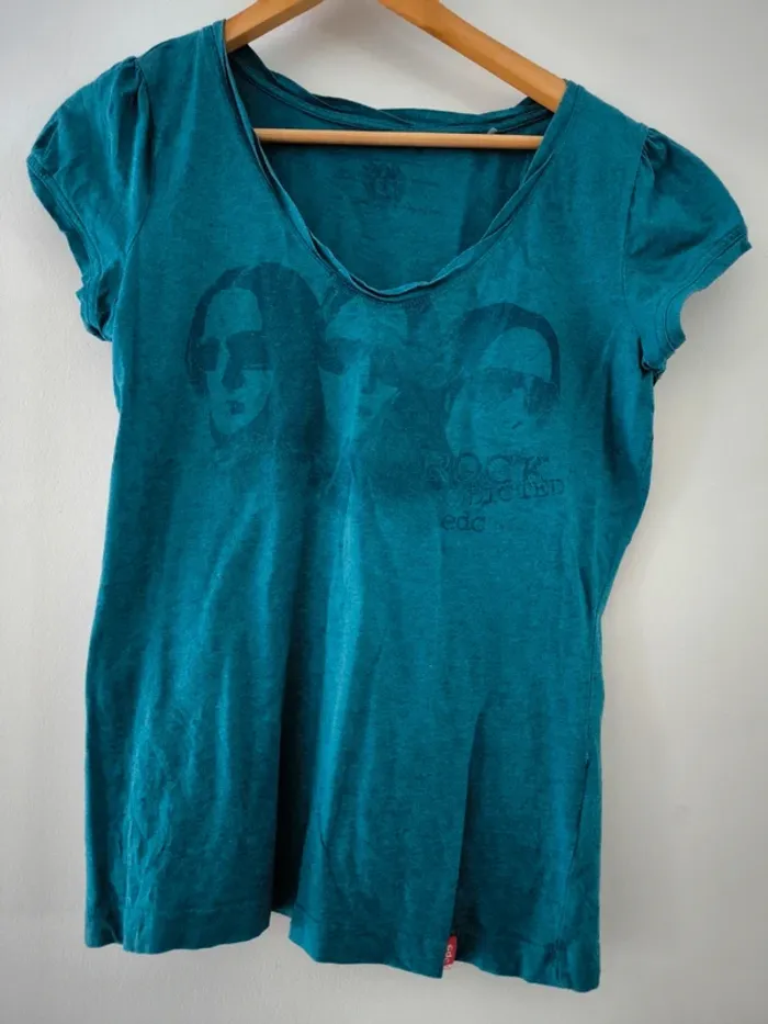 - Coloris bleu canard avec imprimé graphique “Rock Addicted” et logo edc by Esprit