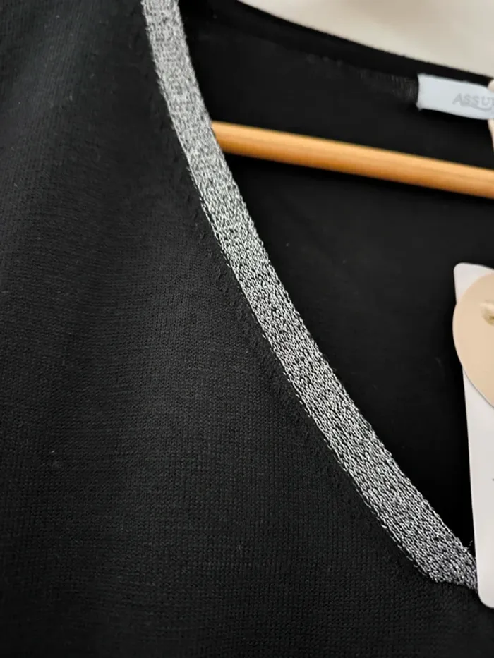 - Col V avec finitions pailletées argentées pour un effet lumineux