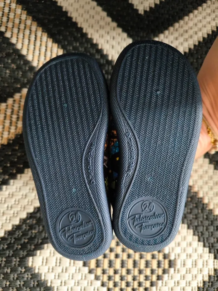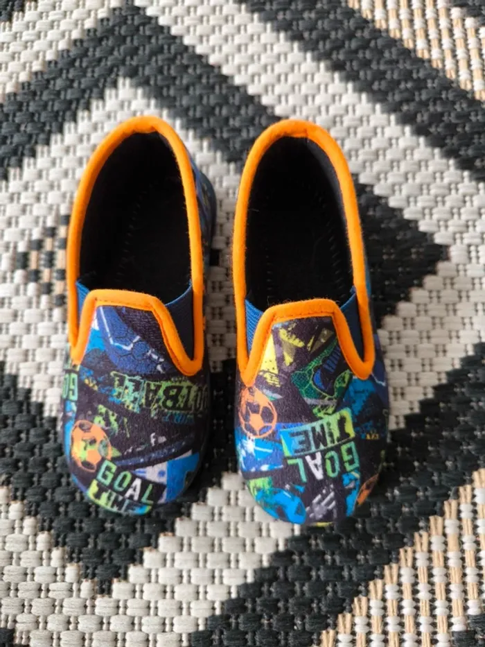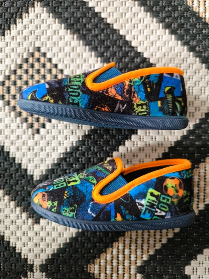 Adorables chaussons souples pour enfant, marque Avec Amour, taille 24. Design fun et coloré avec motifs de ballons de foot et slogans "GOAL TIME" / "GOAL HUNTER" – parfaits pour les petits fans de sport ! Coloris bleu marine avec bordures orange, intérieur doux et confortable. Faciles à enfiler, idéals pour la maison ou la crèche. 📏 Taille : 24 (enfant 2–3 ans environ) 🧼 État : Très bon état – portés peu, semelles propres 👟 Type : Chaussons souples, antidérapants 📦 Envoi rapide et soigné #JLAchaussure24 #JLAcaisseblanche5