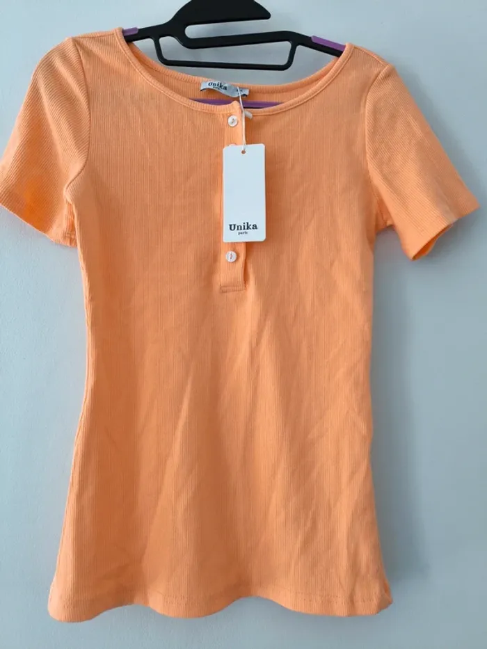 T-shirt côtelé orange Unika – Taille S – Neuf avec étiquette - photo numéro 1