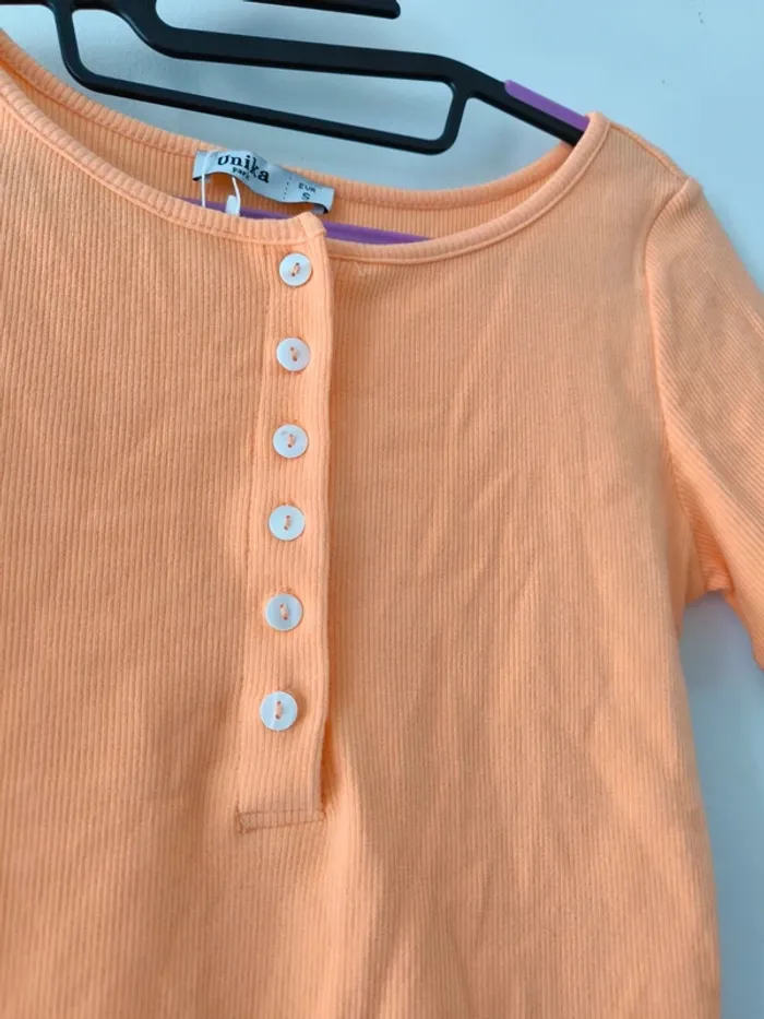 T-shirt côtelé orange Unika – Taille S – Neuf avec étiquette - photo numéro 4