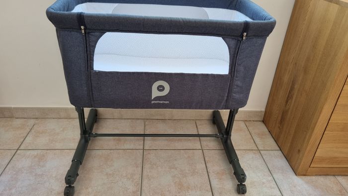 Le Berceau Bisoo de Prémaman est un nid douillet conçu pour offrir à votre tout-petit un sommeil paisible et sécurisé tout en restant à proximité de vous. Sa hauteur ajustable en 5 positions offre de la flexibilité pour s'adapter à différentes hauteurs de lit permettant un accès facile à bébé pendant la nuit. Doté d'une fonction balancelle, le berceau Bisoo bercera délicatement votre enfant pour l'aider à s'endormir sereinement. Équipé de quatre roulettes, ce berceau peut être facilement déplacé d'une pièce à l'autre selon vos besoins.    Caractéristiques : • Berceau type cododo • Hauteur ajustable en 5 positions • Fonction balancelle • 4 roulettes avec freins • Ouverture zippée • Filet aéré • Matelas confortable • Sac de transport inclus Spécificités : • Âge d'utilisation : dès la naissance • Dimensions : 87 x 65 x 84 cm • Homologations : NF EN 1130:2019 Attention ! Le berceau ne convient pas aux enfants qui peuvent s’asseoir, s’agenouiller ou se lever seuls. Attention ! Le produit ne doit pas être utilisé avant d’avoir lu les instructions d’utilisation. Lorsque la paroi latérale du berceau est abaissée, le berceau doit seulement être utilisé en étant fixé au lit des parents. Quand le berceau est collé au lit des parents, aucun écart ne doit exister entre les deux.