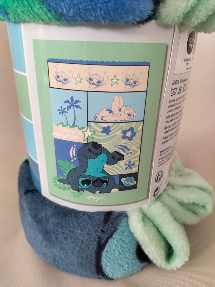 👉 Un plaid pratique, doux et plein de style pour rester bien au chaud avec Stitch 💙🌺.