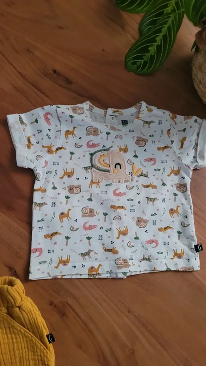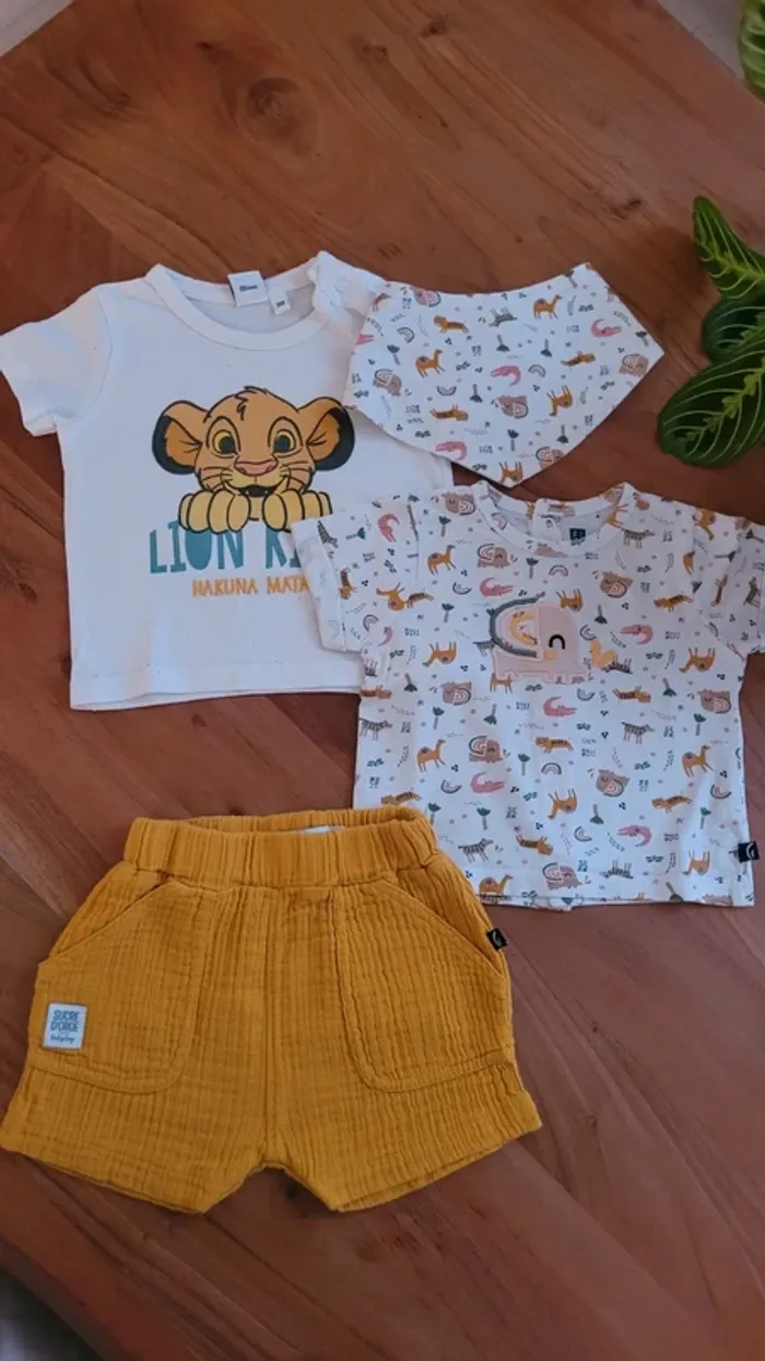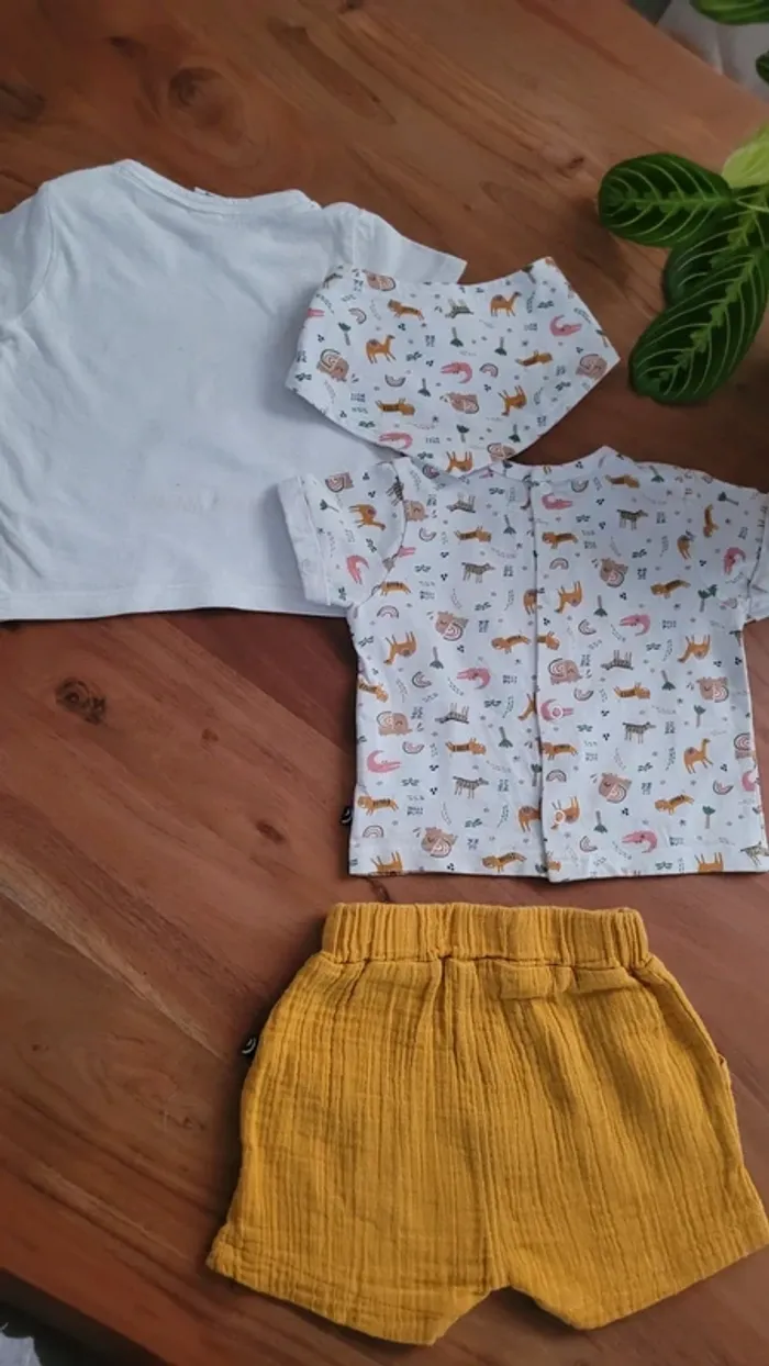 Ensemble garçon composé de deux t-shirts, un short et un bavoir. 3 mois En très bon état #ensemblegarcon3mois #tena27vetementsgarcontaille3mois
