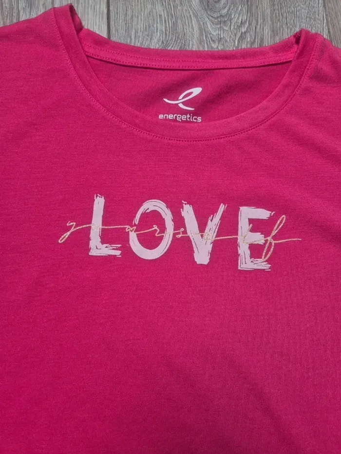 JE N'ACCEPTE PAS D'OFFRE MERCI Tee-shirt Manches courtes rose fuchsia inscription "love" Marque energetics (Intersport) 10 ans en parfait état car peu porté Pour visualiser tous ce que je possède en 10 ans : #ambre6269010ans