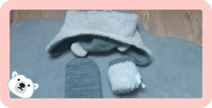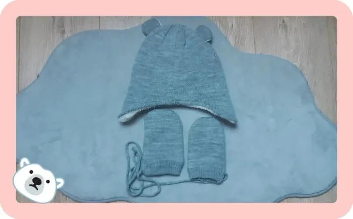 Bonnet + moufles assorties gris "ourson" taille 50 cm en parfait état - photo numéro 3