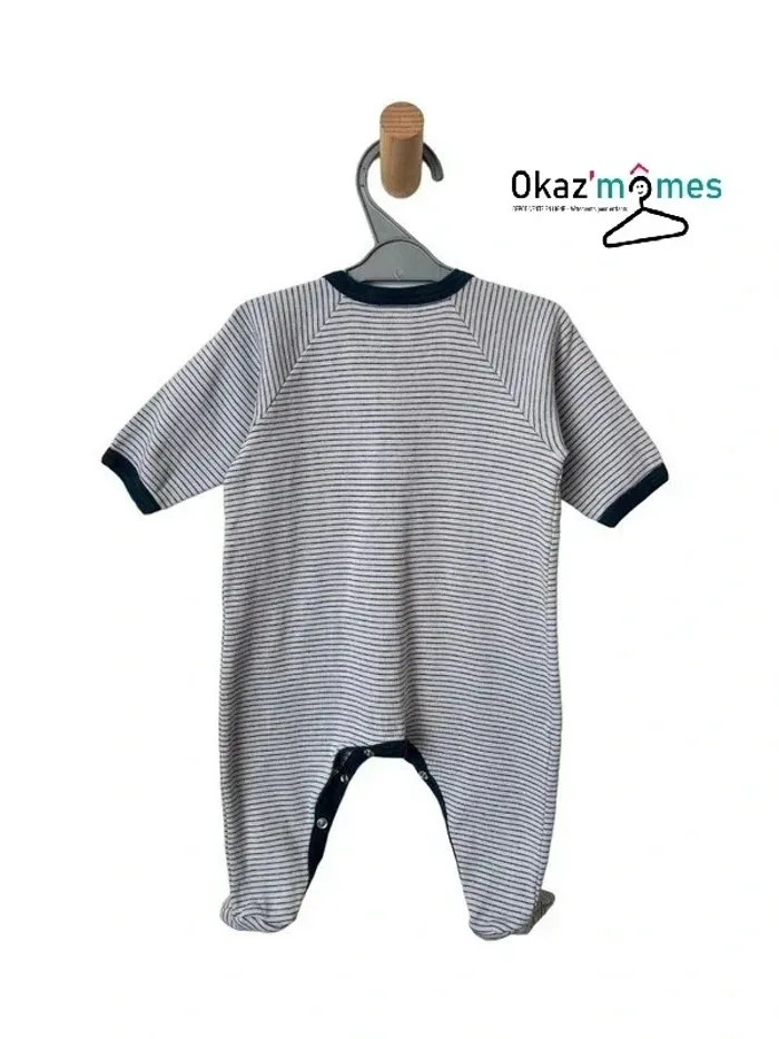 Pyjama coton rayé gris et bleu - Petit Bateau 3 mois (60cm)