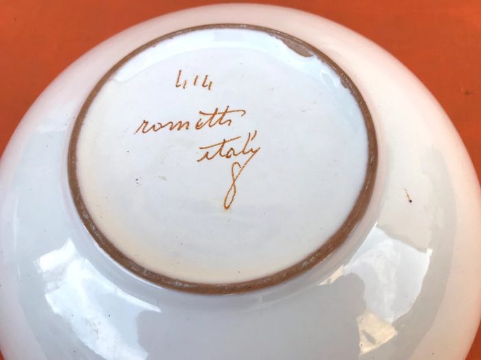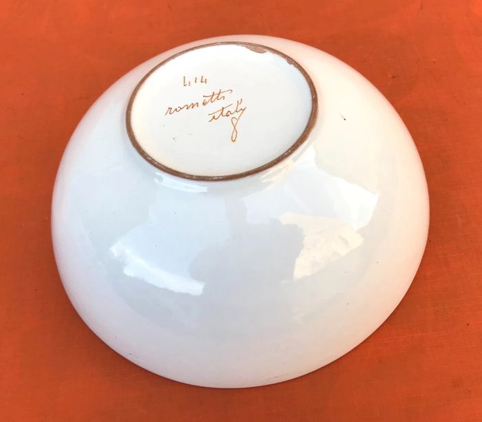 Plat creux de service Céramique émaillée Design Rometti Italy N°414 Diamètre : 235mm Hauteur : 88mm Poids : 820grs Une histoire italienne depuis 1927, Rometti Ceramic fondée par le maître céramiste Settimio Rometti et ses neveux. Le design Rometti Italy à Umbertide (Pérouse) produit des objets d' art, conçus conformément aux tendances internationales. L'entreprise a toujours collaboré avec des artistes et designer renommés pour fabriquer des objets originaux et innovants. pour l' art de la table mais également des vases, lampes, sculptures...