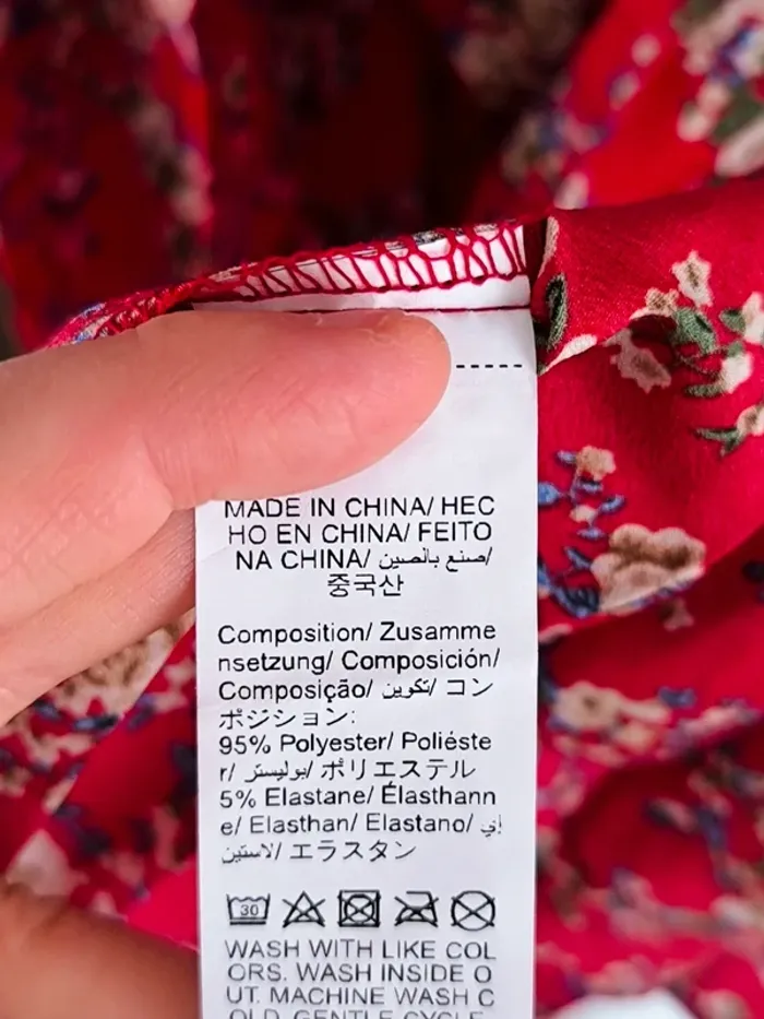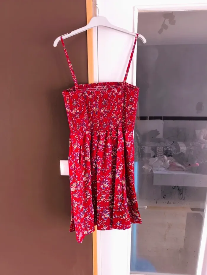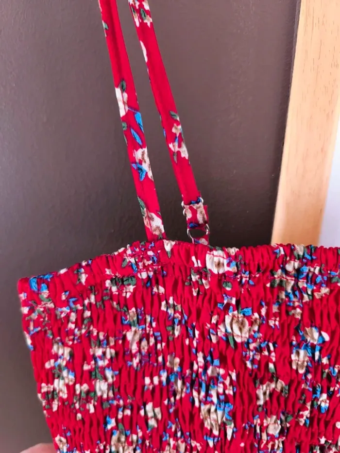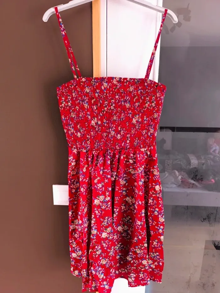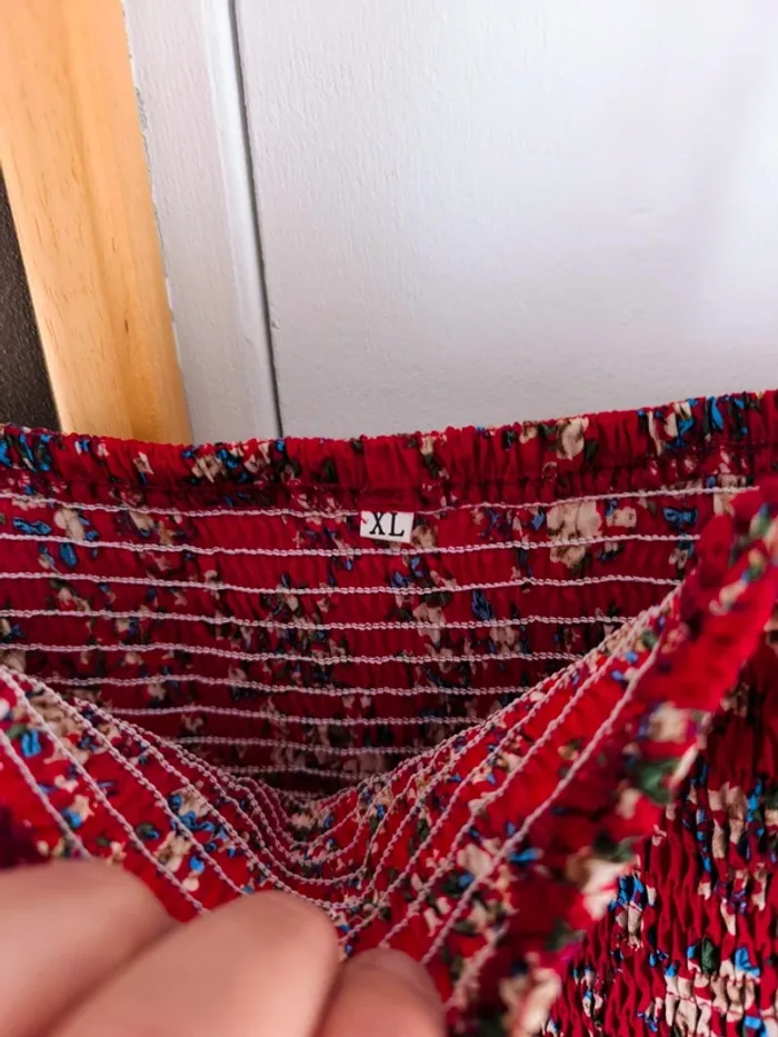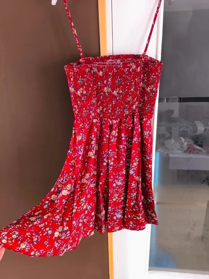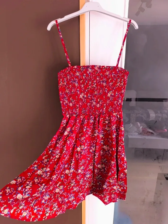 Robe mi longue fleurie rouge, bleue et blanche à bretelles femme XL