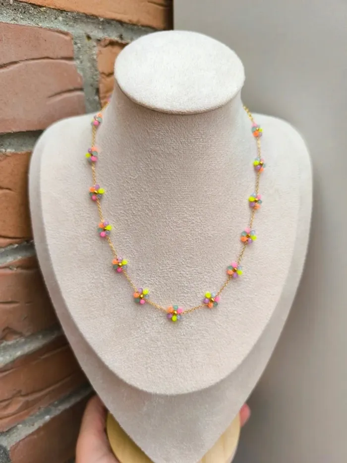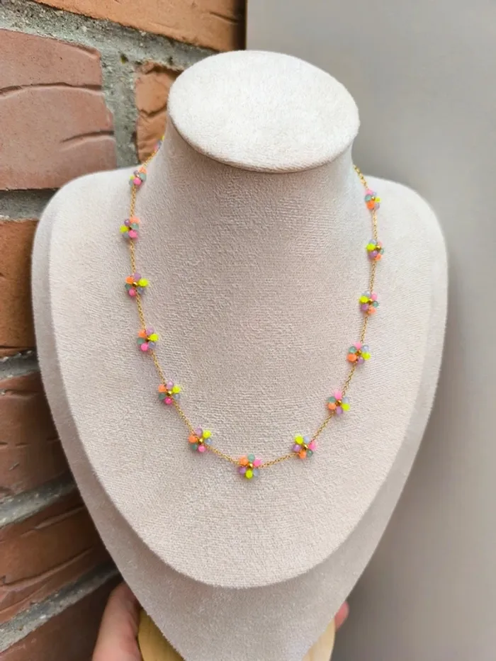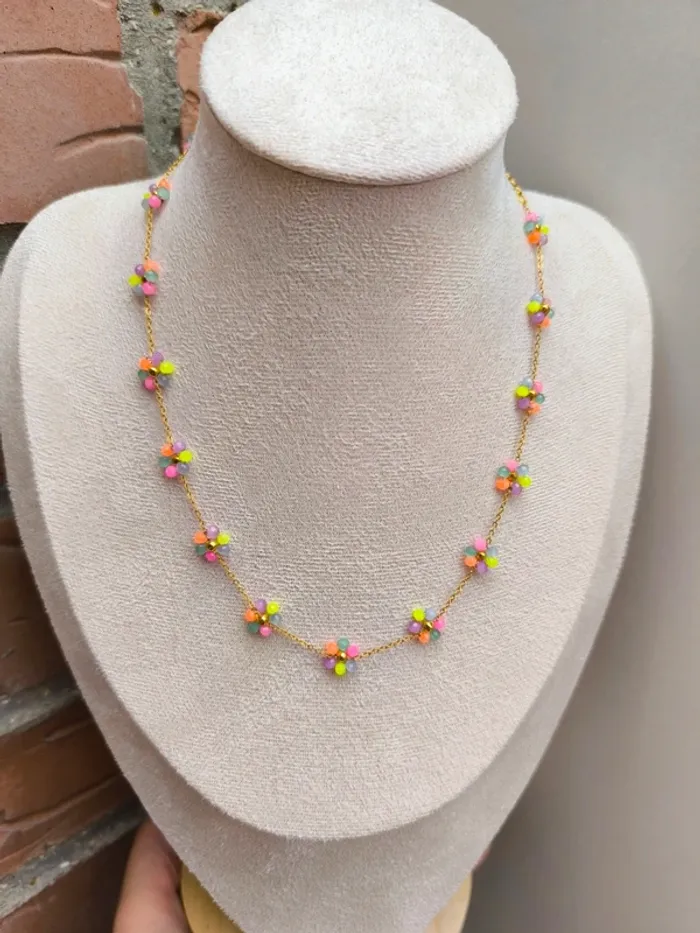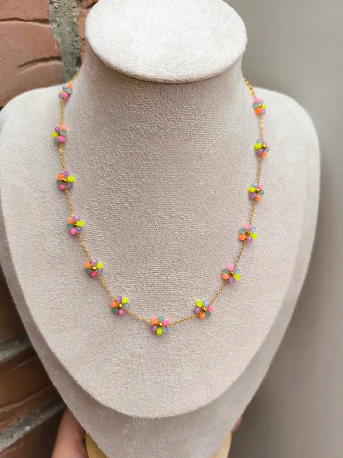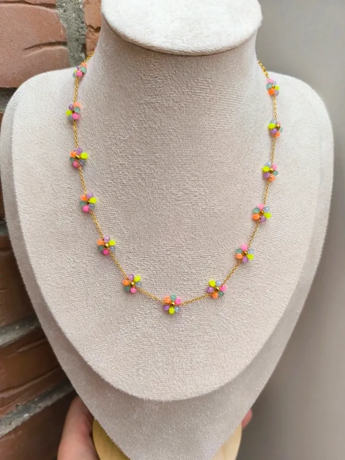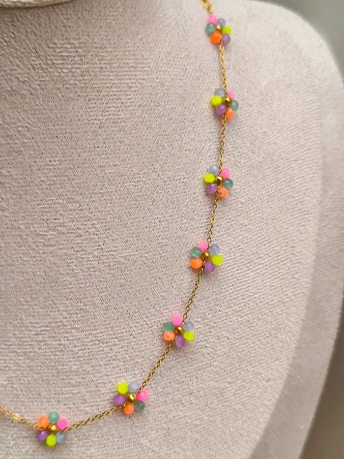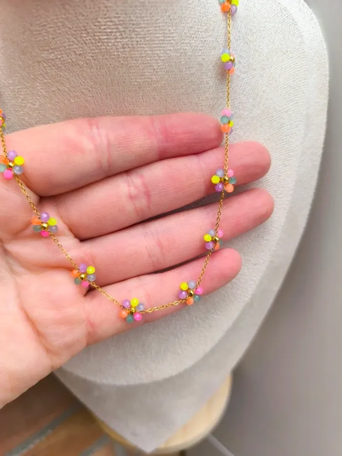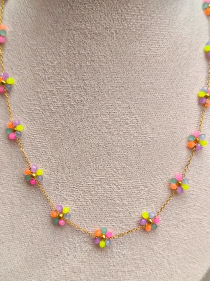 Collier doré avec fleurs marguerites claires multicolores