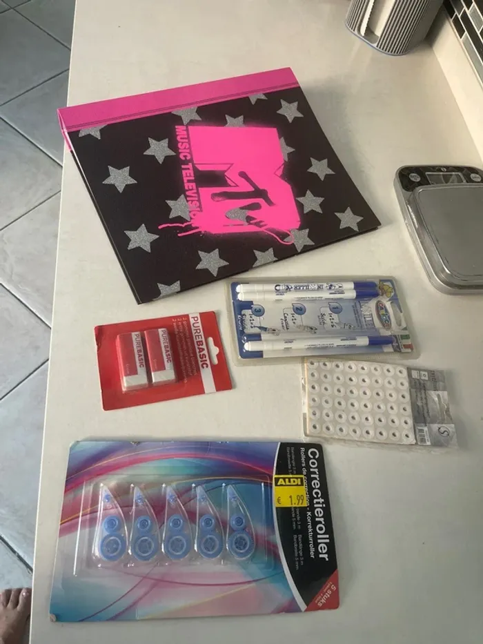1 classeur 2 gommes 3 effaceurs Des œillets Des blancs correcteurs