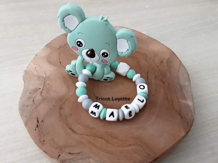 Anneau de dentition koala Réalisé avec du ruban à la place du fil, pour plus de sécurité Prénom au choix Les couleurs peuvent être changées Delais de fabrication: maximum 5 jours (hors dimanche et jour férié) Je ne réalise l'anneau qu'une fois le paiement validé, une photo vous sera envoyée avant l'envoi.
