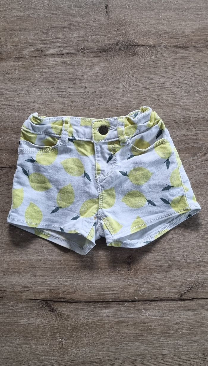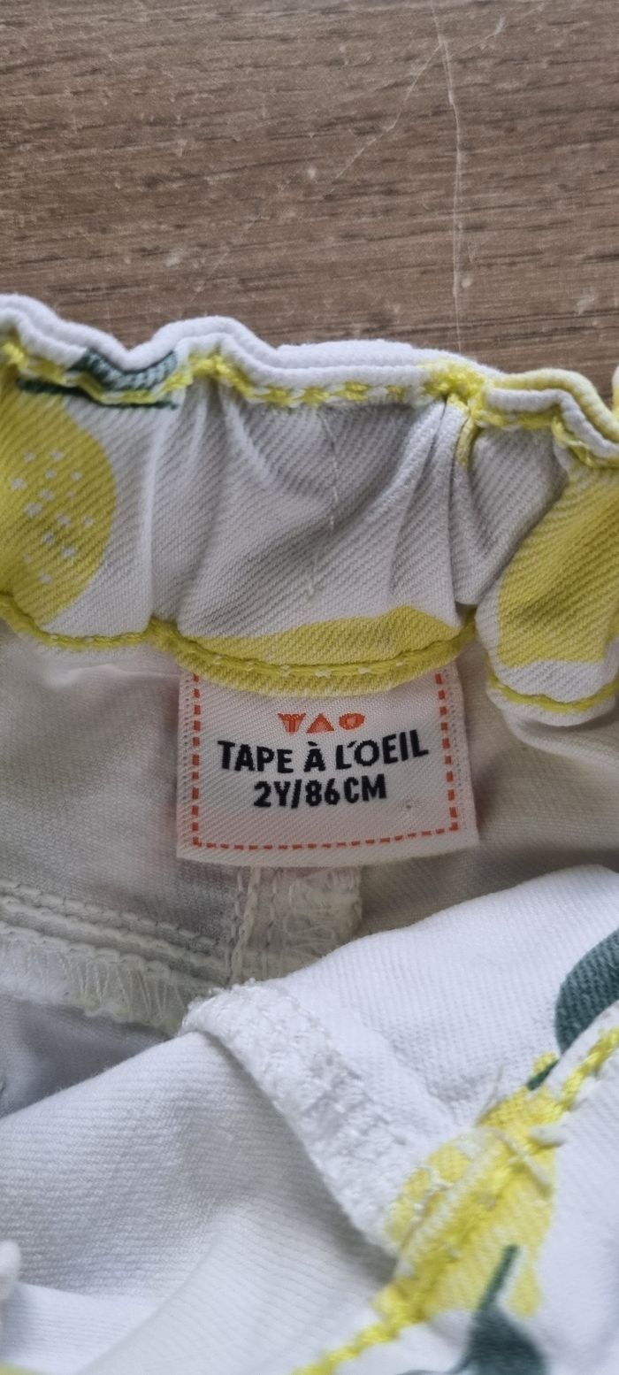 Short en jeans à motifs citrons Ajustable à la taille par élastiques Tape à l'œil taille 2 ans Très bon état