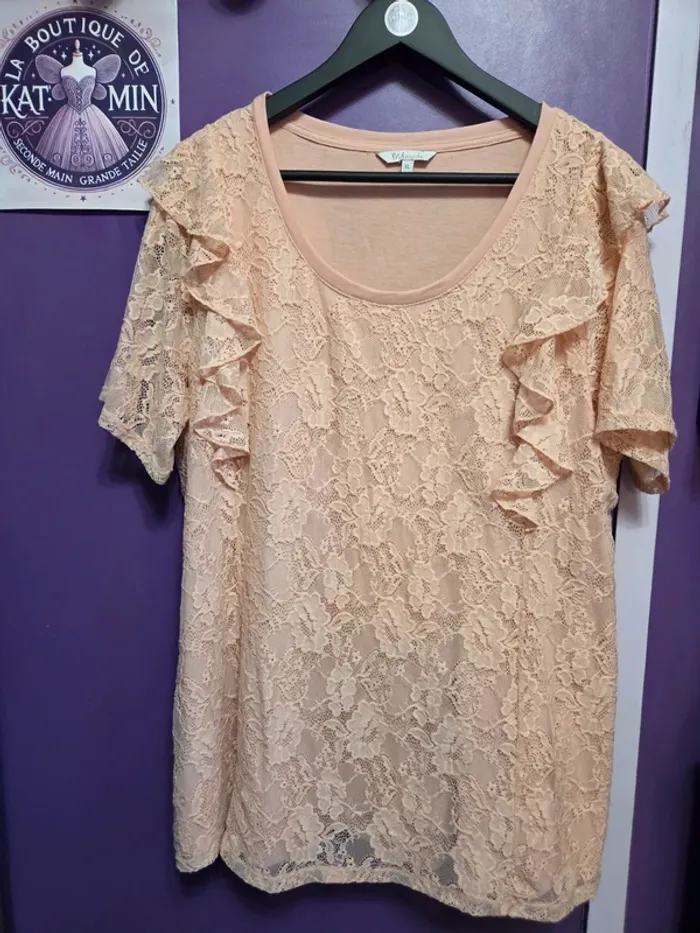 Blouse manches courtes doublée en dentelle extensible T46 M&S Mode - photo numéro 1