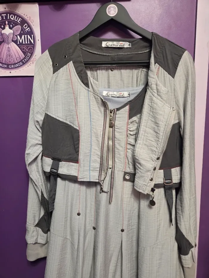 Superbe ensemble original composé d’une robe sans manches et d’une veste courte assortie, signé C’ fait pour vous. Un look à la fois moderne et élégant, idéal pour se démarquer. 🔹 Robe : Longueur milieu dos : 96 cm Largeur d’aisselle à aisselle : 49 cm 🔹 Veste courte : Longueur milieu dos : 39 cm Largeur d’aisselle à aisselle : 51 cm 👉 Taille indiquée sur l’étiquette : 3 👉 Convient un 40/42. 📦 En excellent état, prêt à rejoindre un nouveau dressing ! #ensemblefemme40 #robefemme40 #vestefemme40 #cfaitpourvous #modeoriginale #styleunique #vetementfemme40 #secondevie #femme40 #laboutiquedekatmin40