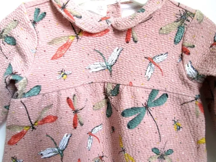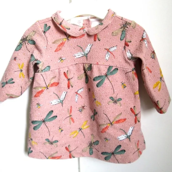 ravissante robe marque Zara Taille 6/9 mois vieux rose imprimé libellule col claudine