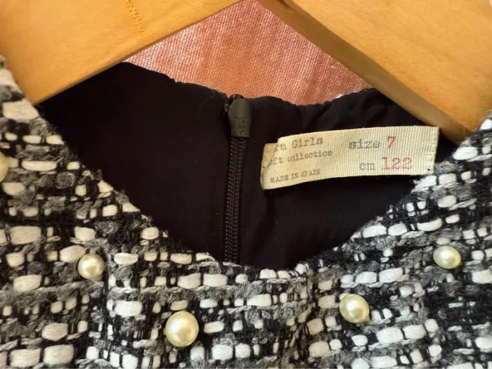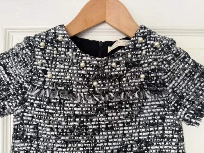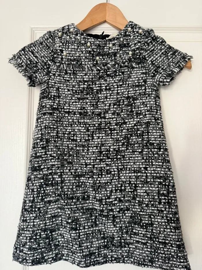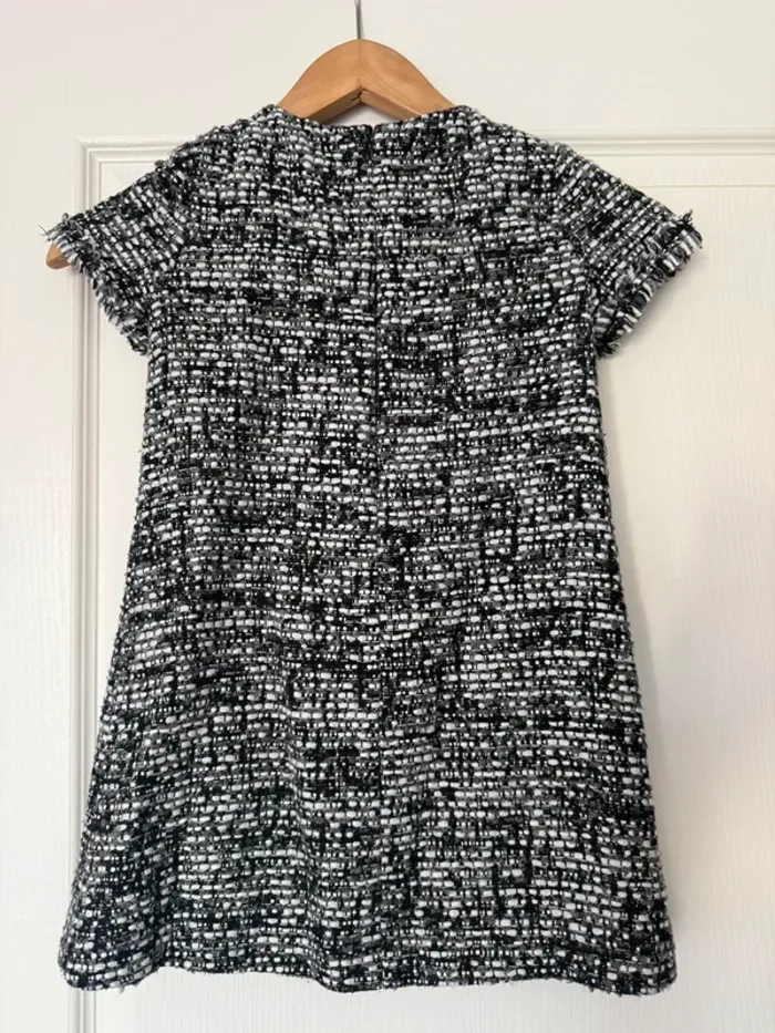 Ravissante robe droite Imprimé blanc et noir Chic Perles devant Zip au dos Marque Zara Taille 7 ans Prix fixe