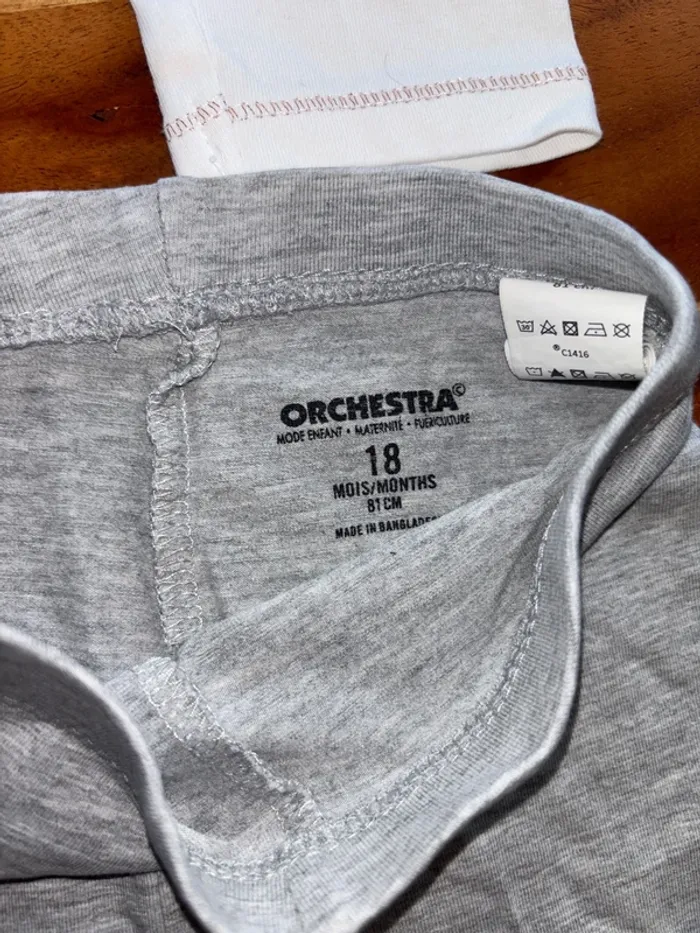 Je vend ce lot de 4 leggings en taille 18mois 3 orchestra et 1 Wed’ze décathlon Le décathlon est en taille 24mois mais taille petit donc je lui mettais en 18mois