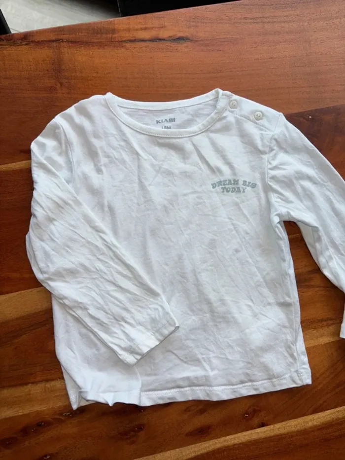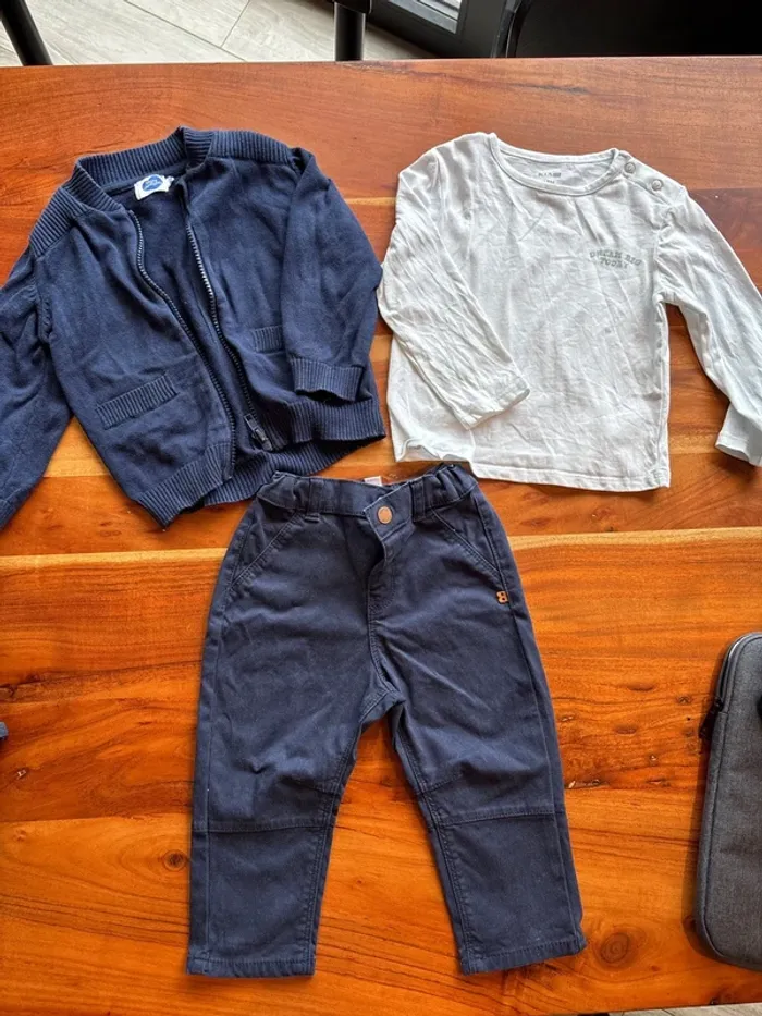 Je vend ce lot de vêtements en taille 18mois Un pantalon Obaibi un gilet mots d’enfants et un teeshirt ML Kiabi Très bon état