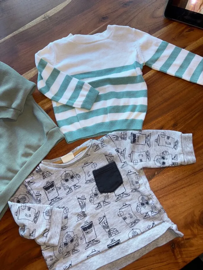 Je vend ce lot de 3 pull 74cm Un Zara, un Kiabi et un lot d’enfant