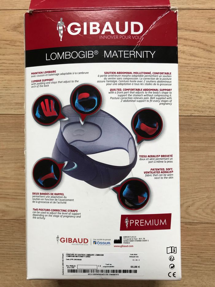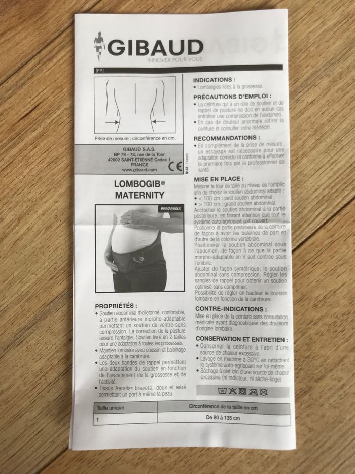 Ceinture maternité en très bon état. Il est indiqué sur la notice que la ceinture est adaptée pour une circonférence de taille entre 80cm et 135cm. Taille 1, achetée en pharmacie.