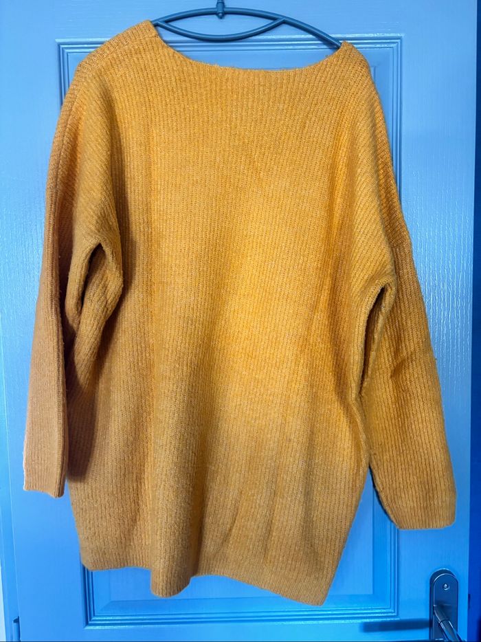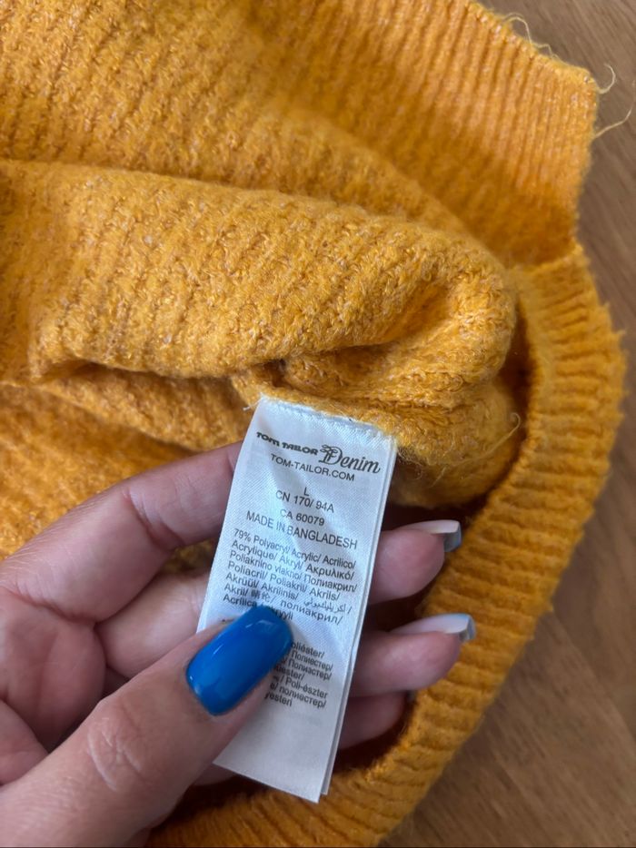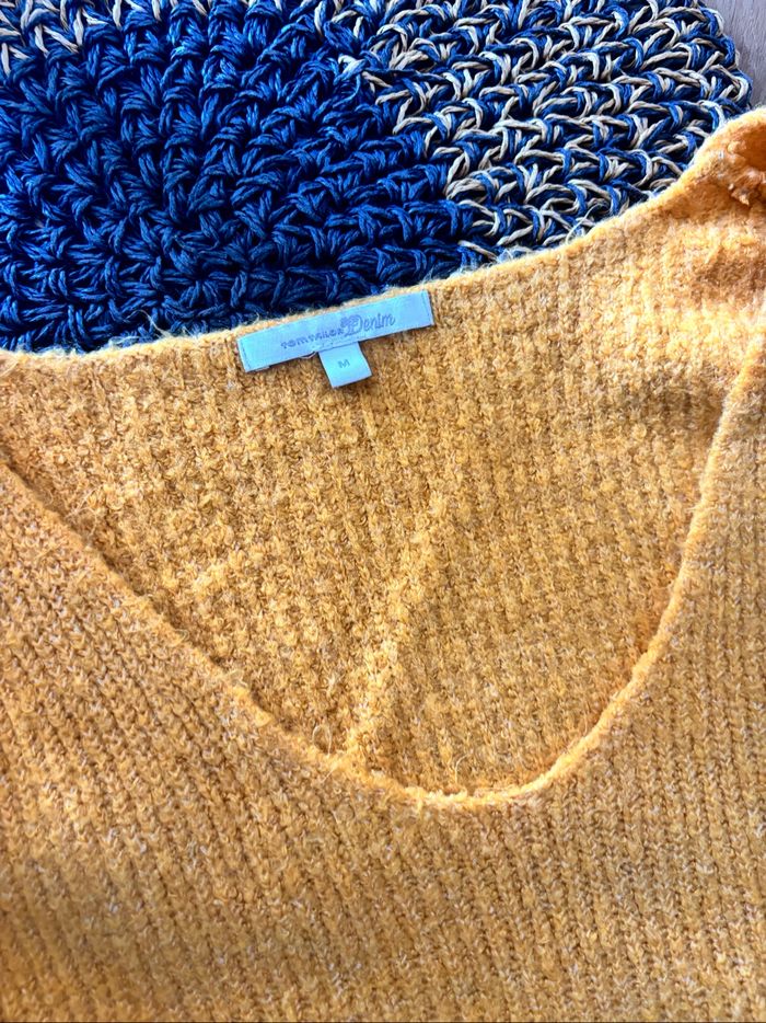 Robe pull Tom tailor taille M sur l’étiquette du dos mais taille grand et taille L sur l’étiquette intérieur… Aisselles à aisselles environ 67 cm, Longueur environ 72 cm jaune moutarde tbe