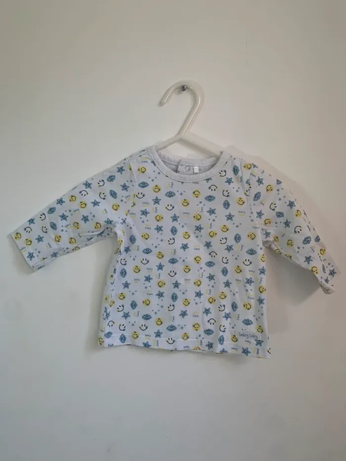 📏 Taille : 3 mois 🏷️ Marque : Smiley Baby 🎨 Couleur : Bleu et blanc ✨ État : Très bon état 💬 Description : • Adorable ensemble composé d’une salopette bleue avec motif smiley 😊 • Haut à manches longues avec imprimés étoiles et smileys pour un look joyeux 🌟 • Salopette pratique avec pressions pour faciliter le change 👌 • Parfait pour offrir confort et style à bébé 💙 #oussama1418_3mois