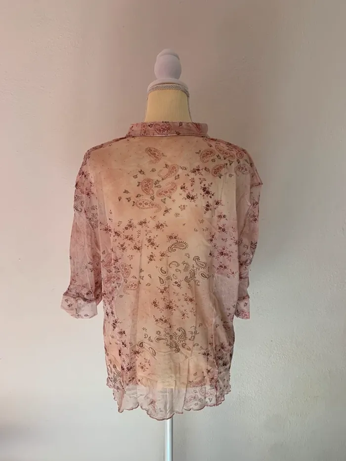 Chemisier léger transparent à motifs floraux et paisley – Taille XXL