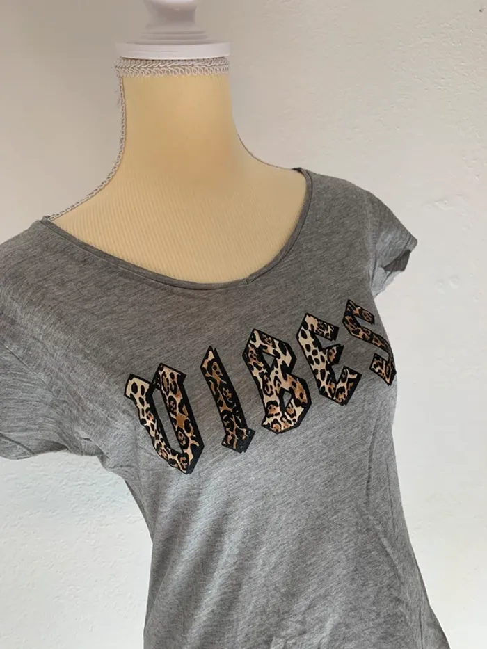 T-shirt gris “VIBES” imprimé léopard - Taille 38 - Atmosphere - photo numéro 2
