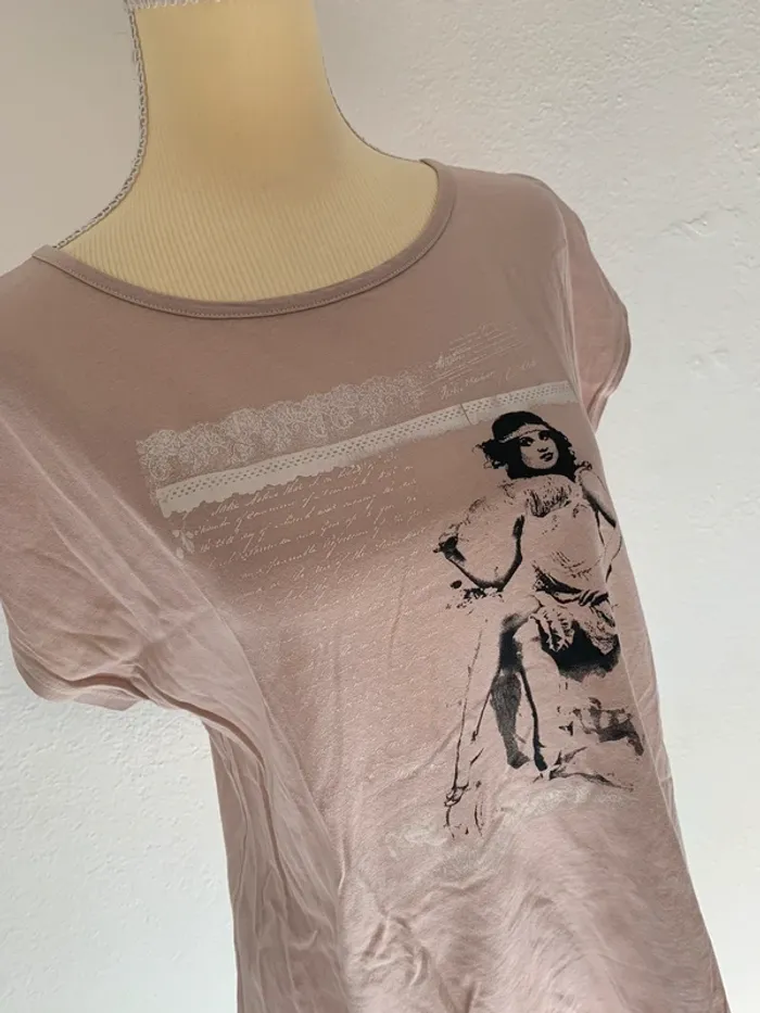 T-shirt rose poudré vintage femme – Ici & Maintenant – Taille 34/36 - photo numéro 2