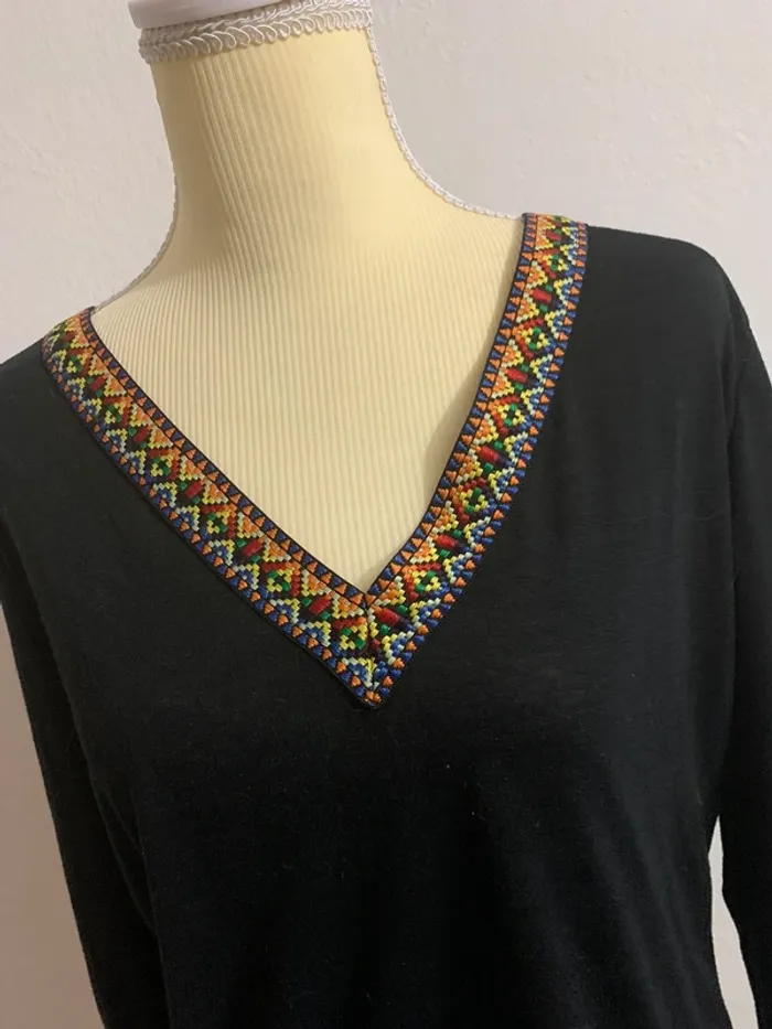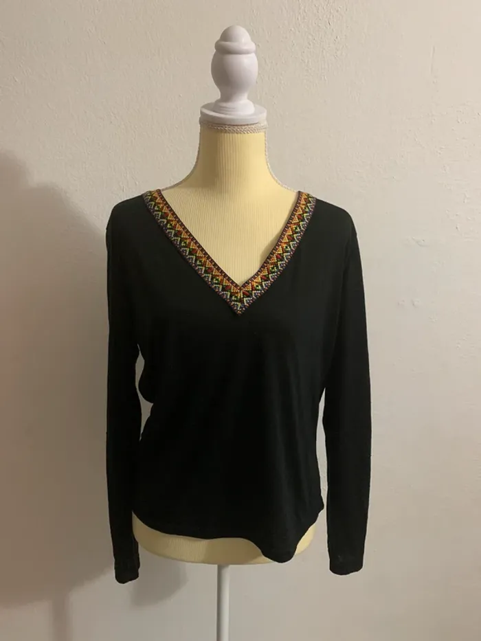 Haut noir col V avec détail brodé coloré – Taille M/L - photo numéro 1