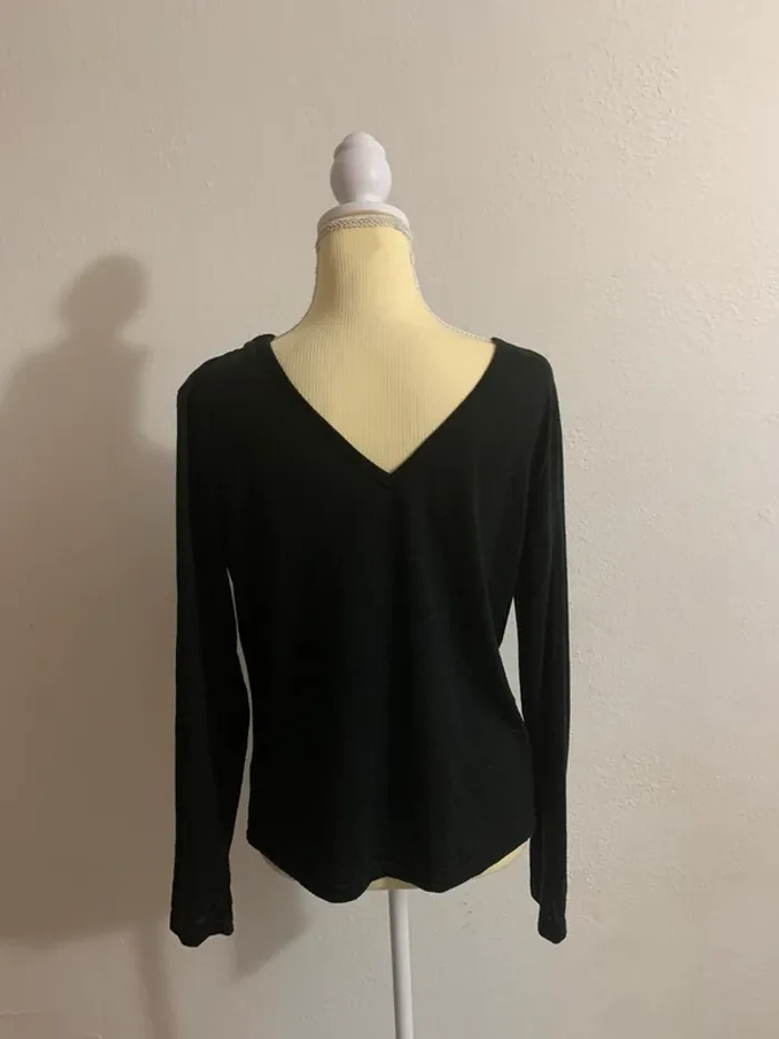 Haut noir col V avec détail brodé coloré – Taille M/L - photo numéro 3