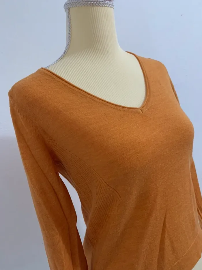 Pull fin col V Camaïeu – Taille XS – Couleur camel - photo numéro 3
