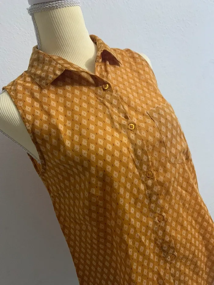Chemisier sans manches Cache Cache jaune moutarde à motifs – Taille S - photo numéro 2