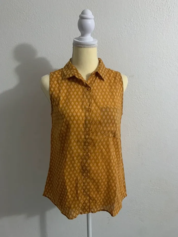 Chemisier sans manches Cache Cache jaune moutarde à motifs – Taille S - photo numéro 1