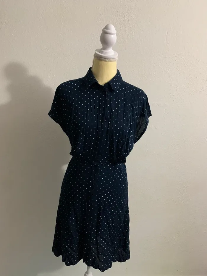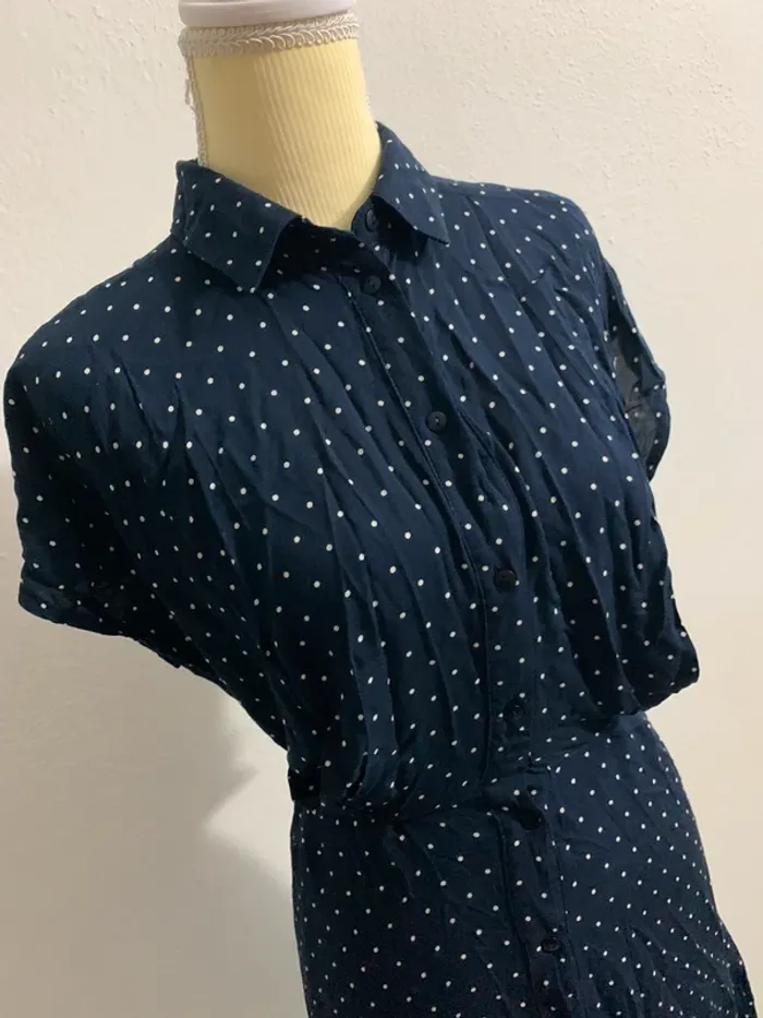Robe chemise bleu marine à pois blancs – Cache Cache - Taille M