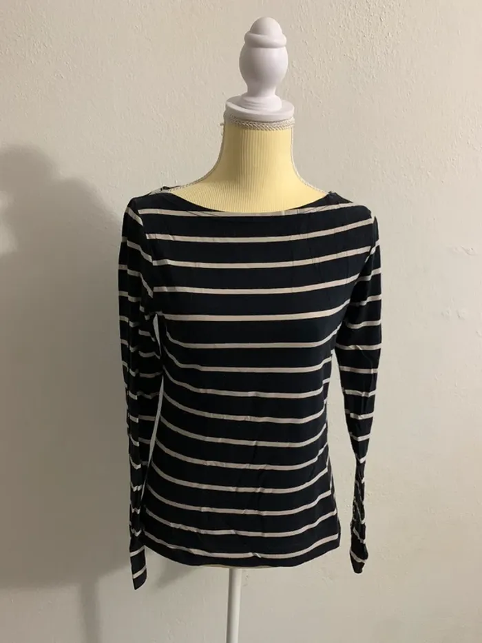 📏 Taille : M 🏷️ Marque : H&M 🎨 Couleurs : Noir & beige rayé ✨ État : Très bon état 💬 Description : • Haut manches longues à rayures horizontales, style marin revisité ⚓ • Encolure ronde dégagée pour un porté décontracté 👕 • Matière douce et agréable à porter, parfaite pour la mi-saison 🍂 • Coupe légèrement ajustée qui allonge la silhouette ✨ • Facile à combiner avec un jean, un chino ou une jupe pour un look casual chic 👖👗 #oussama1418_TailleM