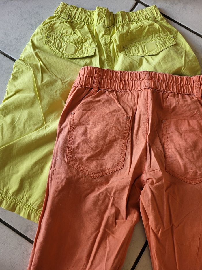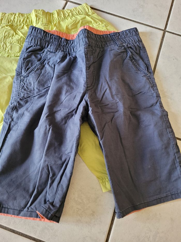 Taille 10 ans TAILLE ÉLASTIQUE Le lot comprend : - 1 vert anis léger Kiabi 100% coton Très bon état - 1 réversible bleu marine et orange Le côté orange est marqué et blanchi Le côté bleu marine est en excellent état