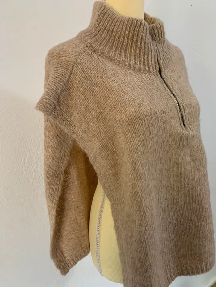 Pull sans manches col zippé beige chiné – Taille unique - photo numéro 2